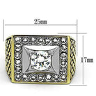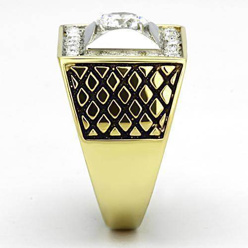 Hombre, Anillo, Acero Inoxidable, Bicolor IP Oro (Ion Plating), Zirconia Cúbica, Transparente