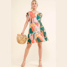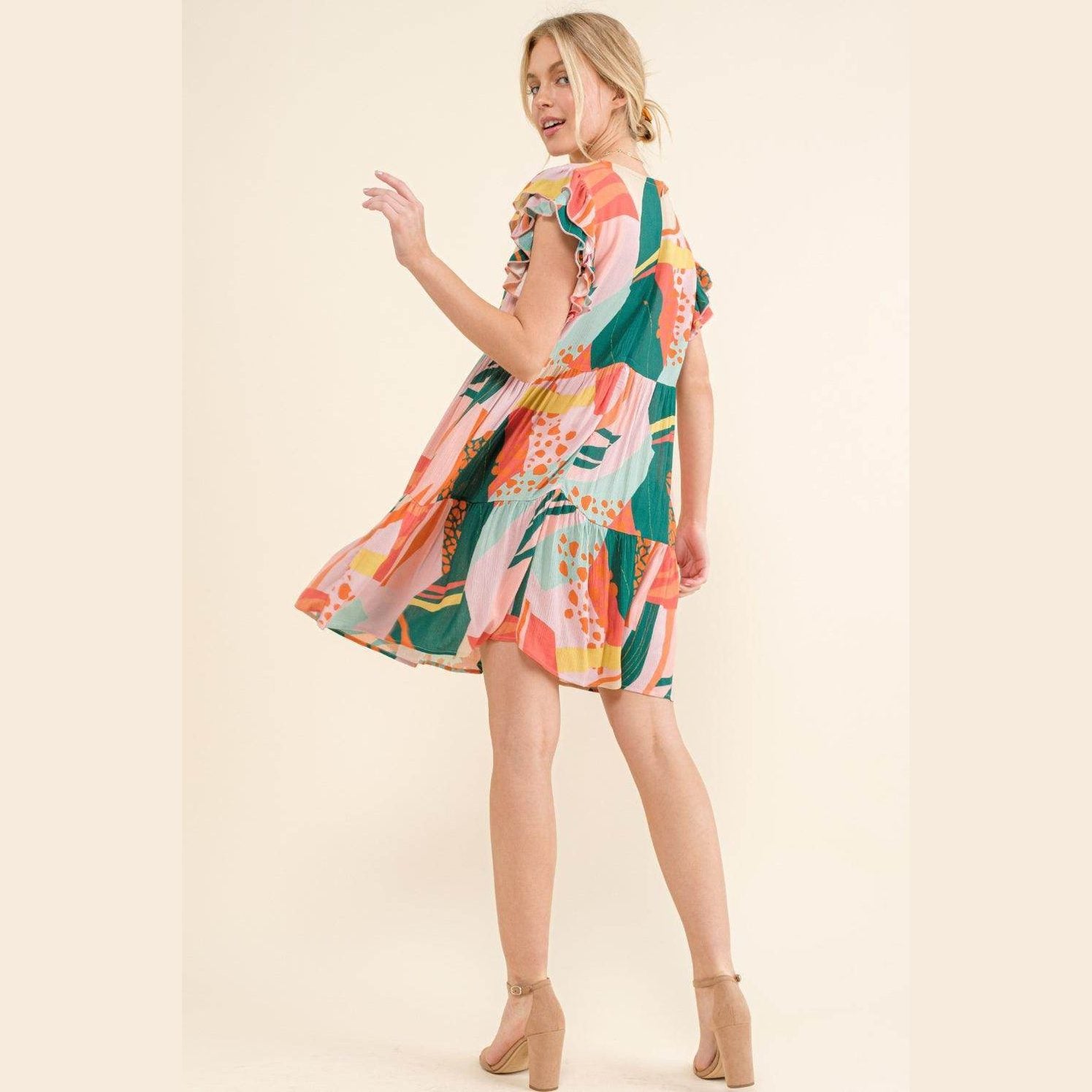 Learn more about our And The Why Printed Double Ruffle Sleeve Dress at VacationGrabs:
