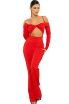 Elevate your style with our Open Shoulder Cutout Detail Jumpsuit in red. Add it to your cart now and experience the perfect blend of fashion and comfort!