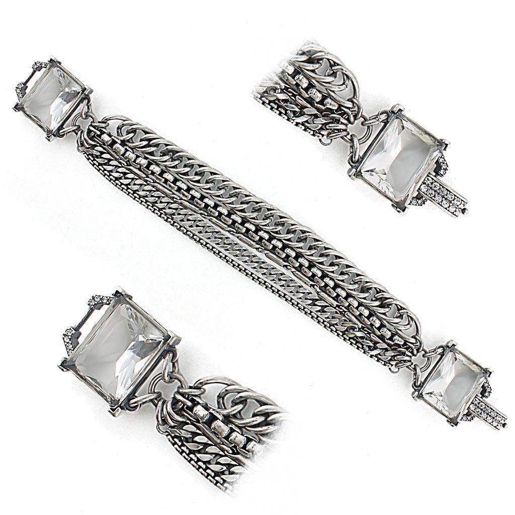 Women's Bracelets - LO1276 - Antique Silver Brass Bracelet with Synthetic Synthetic Glass in Clear