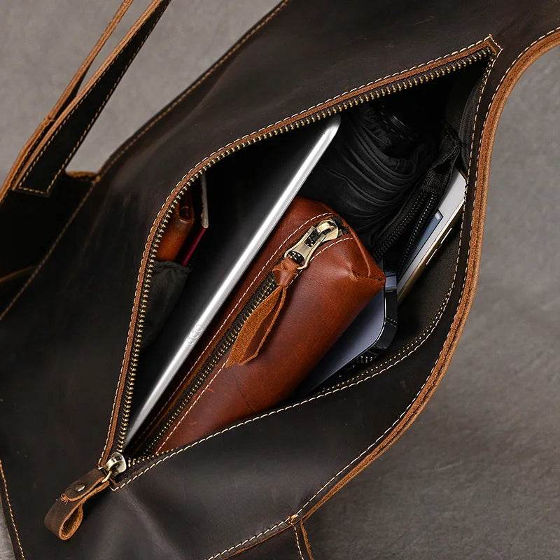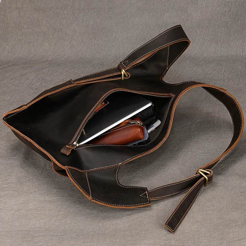 Anti-Theft Crazy Horse Leather School Backpack Travel Bag Men