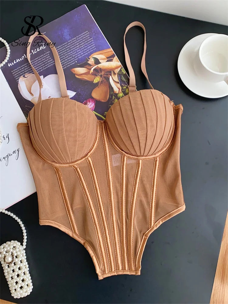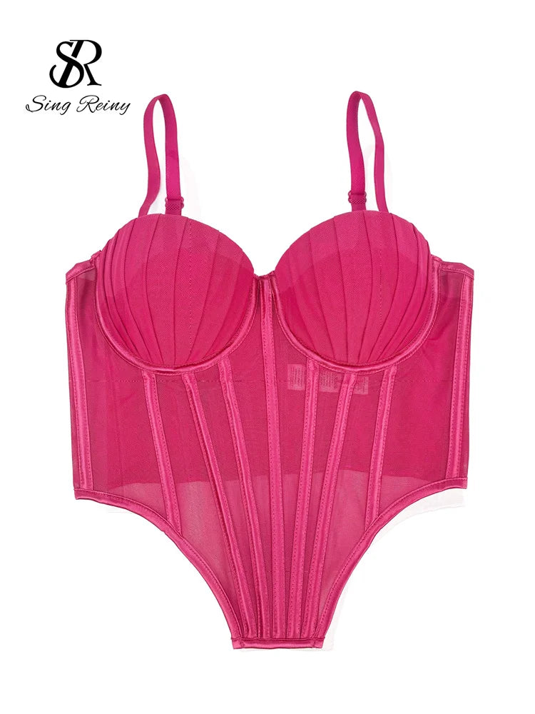 Step out in style with the SINGREINY Fashion Solid Corset Lingerie Top from VacationGrabs. This Alluring bustier camisole for ladies gives any outfit a bold upgrade. It features a form-fitting sheer mesh design with a slim silhouette. The American retro look stands out for its unique style.