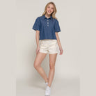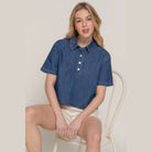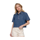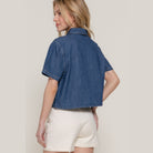 Womens Short Sleeve Boxy Dark Denim Shirt