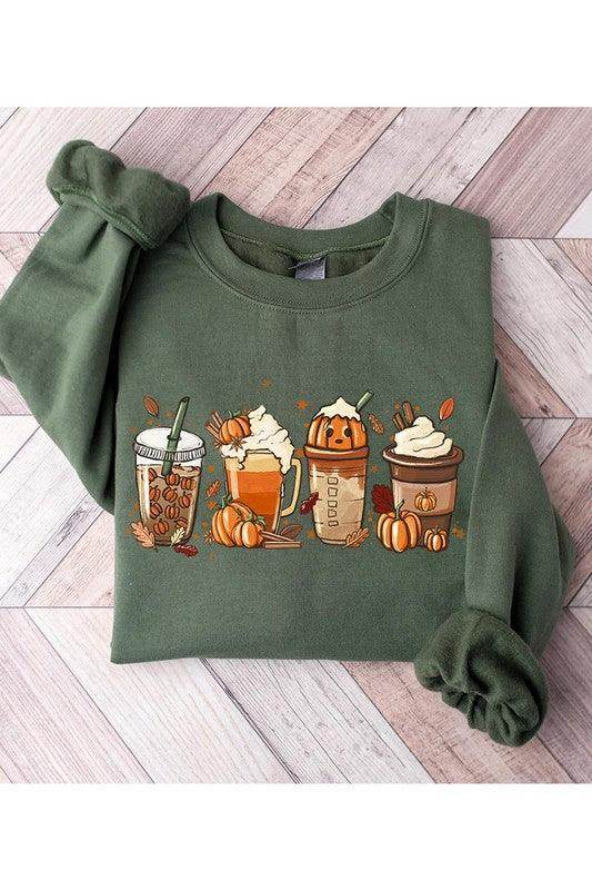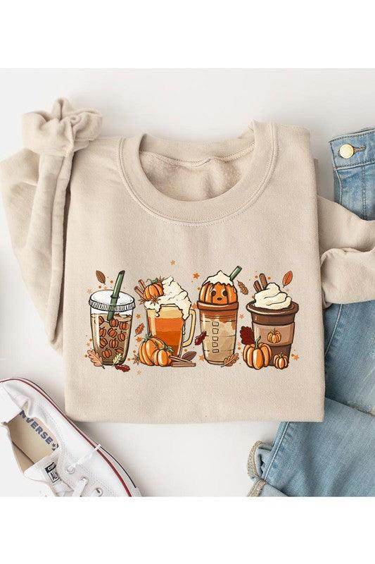 With its charming pumpkin latte design, this fall fleece sweatshirt captures the essence of the season. This delightful print adds a playful touch while staying trendy, so you can make a fashion statement wherever you go. Pair it with jeans or leggings for a relaxed look that's ideal for casual outings or coffee dates.