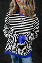 Black Stripe Oversized Contrast Trim Pullover Sweatshirt