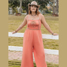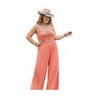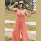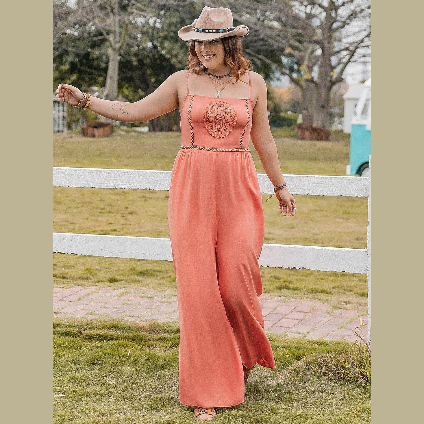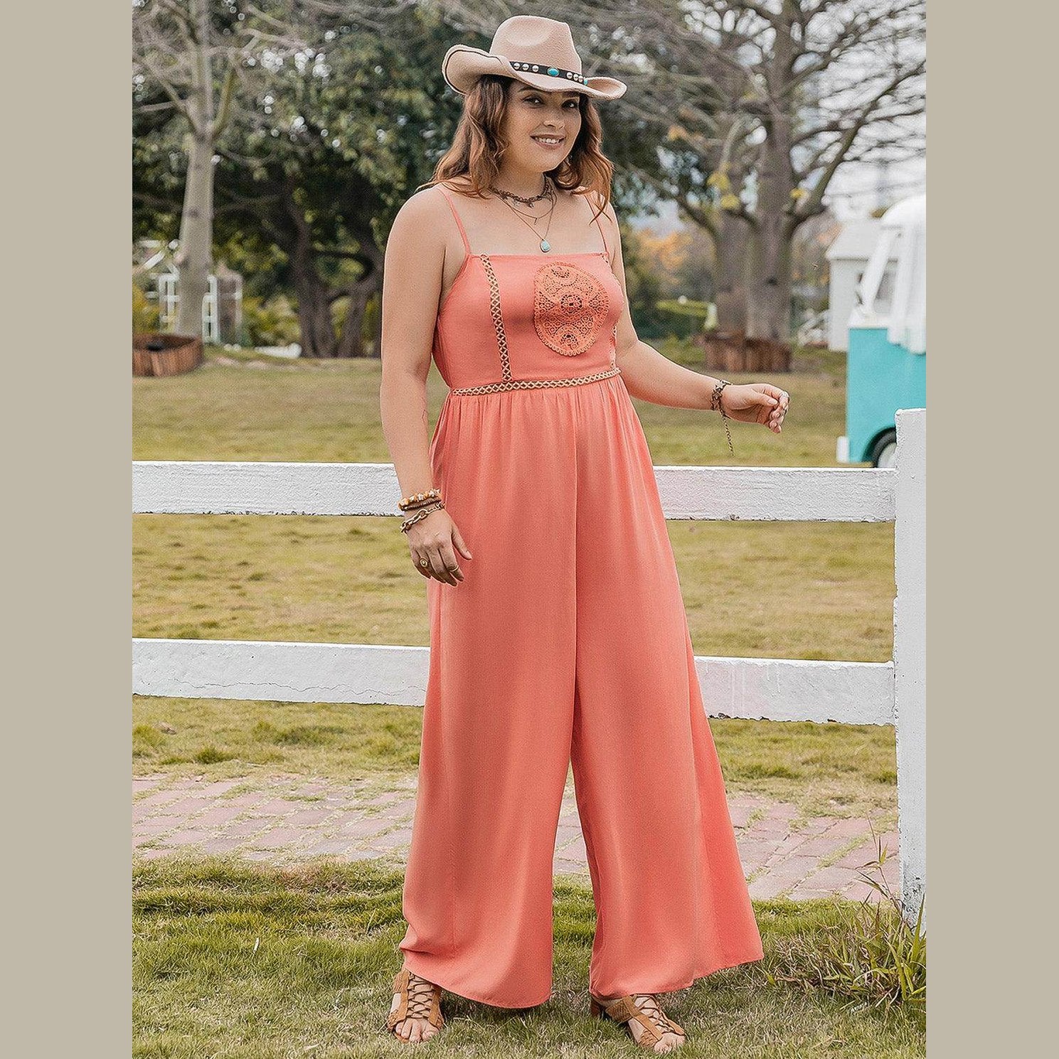 Learn more about our Plus Size Lace Detail Spaghetti Strap Wide Leg Jumpsuit at VacationGrabs: