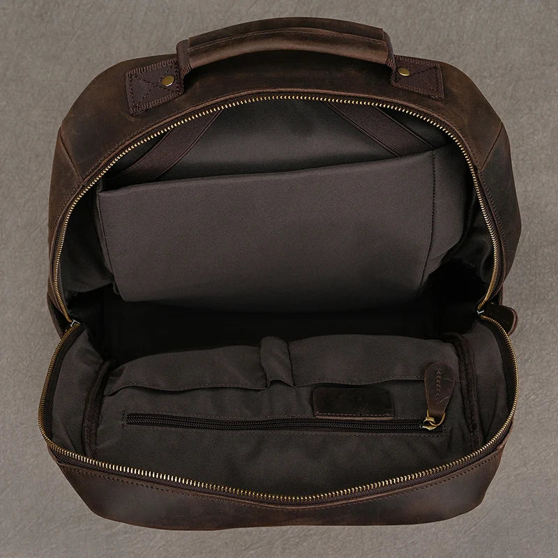 Men’s Crazy Horse Leather Backpack 15.6" Laptop School Bag