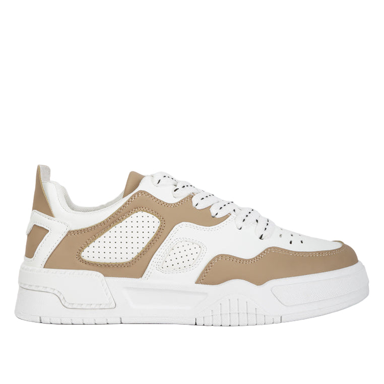 Brace yourself to confidently navigate sophisticated fashion with these elegantly understated casual patchwork paneling sneakers. An impeccable choice to complement your favored tailored trousers or well-fitted jeans. Get ready to make your mark in the world of style with these kicks!