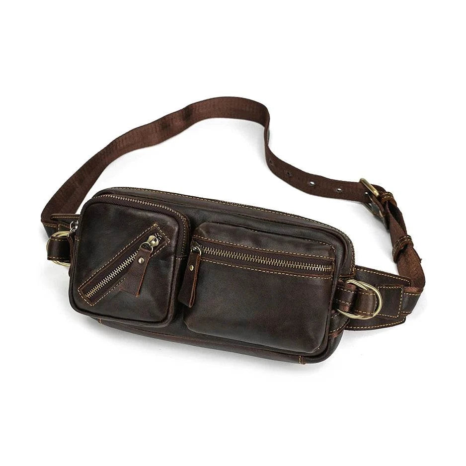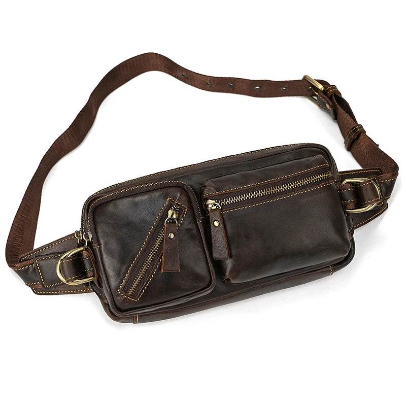 Leather Waist Bag for Men Travel Chest Pack Dual Use Fanny Bag