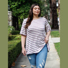 Add the Plus Stripe Bell Short Sleeve Top to your cart now and experience the perfect blend of fashion and comfort!