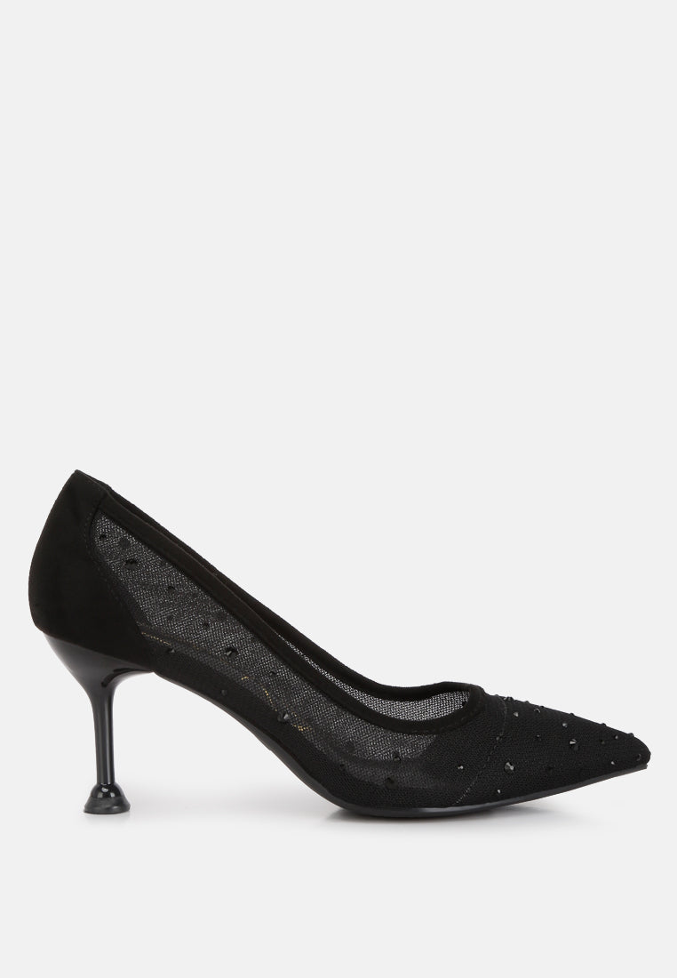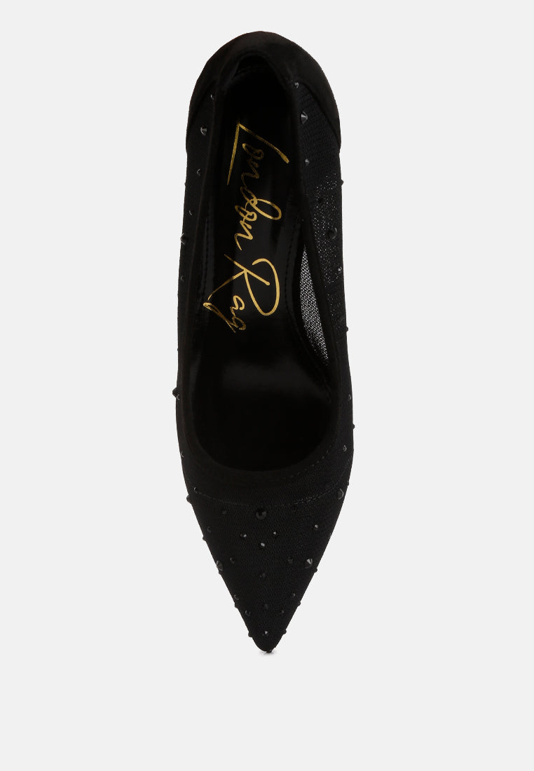 Guifaux Leatherre Rhinestone Embellished Lace Sandals