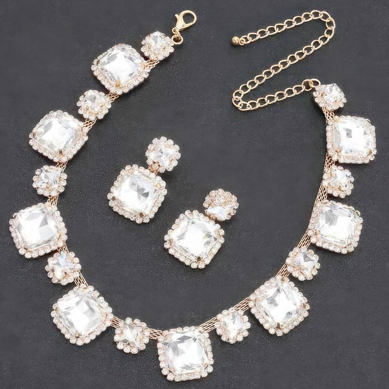 You can wear this sparkly necklace set for special occasions to weddings, galas, or formal dinners. The stones are carefully set for extra durability. This ensures the necklace and earrings stay beautiful wear after wear. The adjustable necklace fits different necklines. The earrings are lightweight so you can wear them comfortably all night.