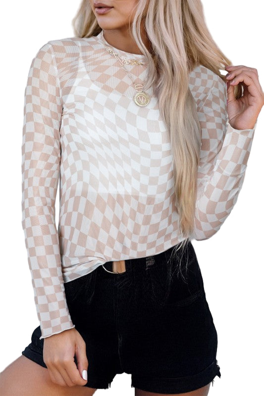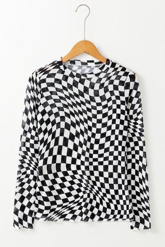Elevate your casual wardrobe with the long sleeve checkerboard shirt women love. This stylish Checker Mesh Mock Neck Long Sleeve Top from JUNIPER BLVD is perfect for adding a fun yet sophisticated touch to your outfits.