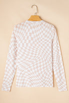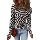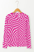 Made from high-quality fabric, this long sleeve top offers a comfortable fit while showcasing a trendy checkerboard pattern. The mock neck adds an extra layer of chicness, making it suitable for various occasions—from brunch with friends to casual days around town.
