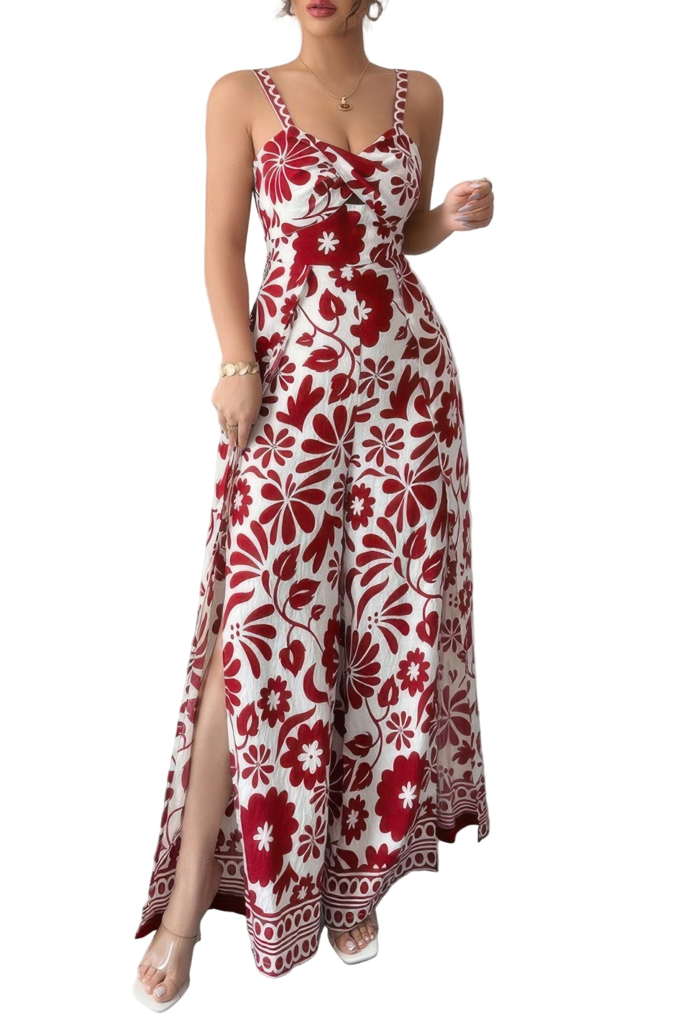 Transform your vacation wardrobe with our wide leg vacation jumpsuit. This stylish jumpsuit features a stunning floral print that radiates warmth and charm. Made with soft, breathable fabric, it ensures comfort while highlighting your unique style.