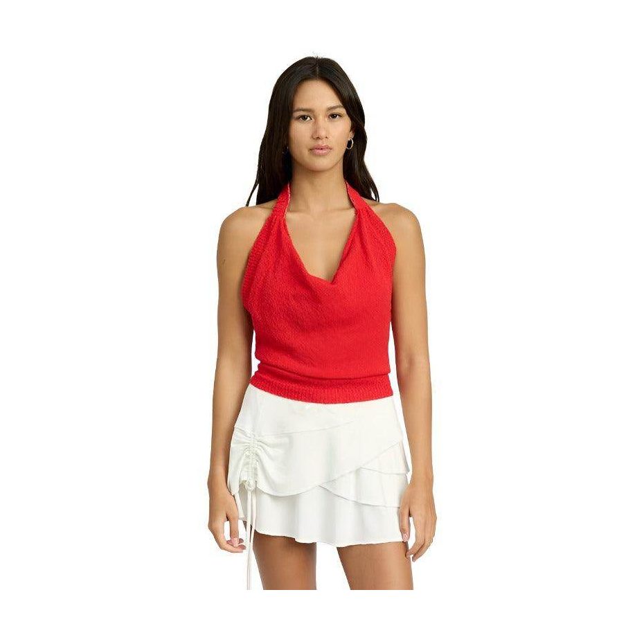 This stylish and versatile top is a must-have for any fashion-forward wardrobe. The cowl neck design adds a touch of elegance, while the halter style provides a flattering and comfortable fit. Made from a blend of high-quality materials, including 40% acrylic, 40% polyester, and 20% artificial HMP, this top is both soft and durable. It is imported and available in a range of sizes, with the model wearing a size small and standing at 5'9' tall. Perfect for any occasion, this top is a statement piece that will elevate any outfit.