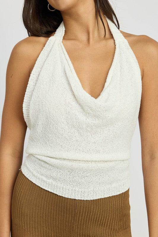 Learn more about our Cowl Neck Halter Top at VacationGrabs: