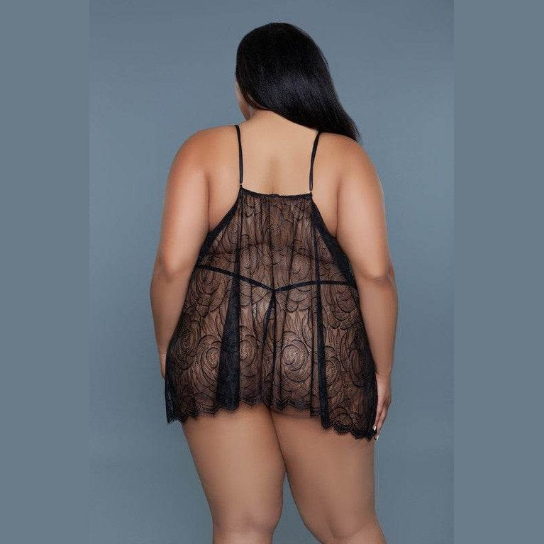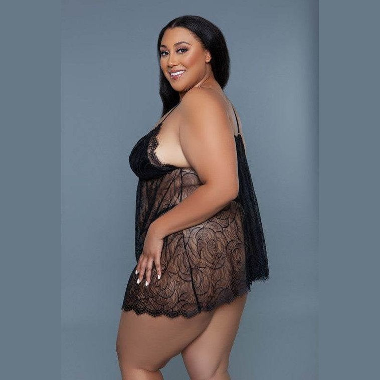 Luxurious floral lace babydoll lingerie, designed to exude elegance and romance. This set features exquisite floral lace detailing throughout, offering a delicate and intricate appearance that enhances its luxurious feel. Flowy silhouette that gracefully drapes over the body, highlighting the lightweight and airy nature of the lace fabric.