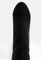 Ready to kill with a look? Our Fauna Knee High Block Heeled Boots are perfect for women's boots for an evening or a crazy night out. These heeled boots come with paneled columns, for utmost comfort and a lightly padded insole to keep your feet happy. A closed almond toe gives it a sleek look and a side zipper opening helps with easy access. Pair with a short dress to bewitch anyone around.