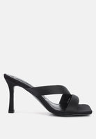 Elevate your style with these elegant heels featuring an open square toe and a single cross-strap design. Crafted from luxurious satin, these heels boast a pin heel for your utmost comfort and glam! Perfect when running errands or when the day calls for a cold coffee!