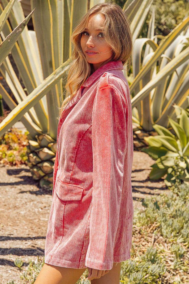 Le blazer côtelé boutonné à manches longues est un choix sophistiqué et avant-gardiste pour tout look professionnel ou raffiné. La texture côtelée ajoute un intérêt visuel et une touche moderne au blazer, tandis que le design boutonné offre un look intemporel et classique. Avec ses manches longues, il offre une couverture supplémentaire et une polyvalence par temps plus frais. Que vous l'associiez à un pantalon ajusté pour une tenue formelle ou que vous l'habilliez avec un jean pour un look plus décontracté et chic, ce blazer est un ajout polyvalent et élégant à votre garde-robe. Rehaussez votre style avec ce blazer côtelé élégant et tendance.