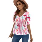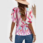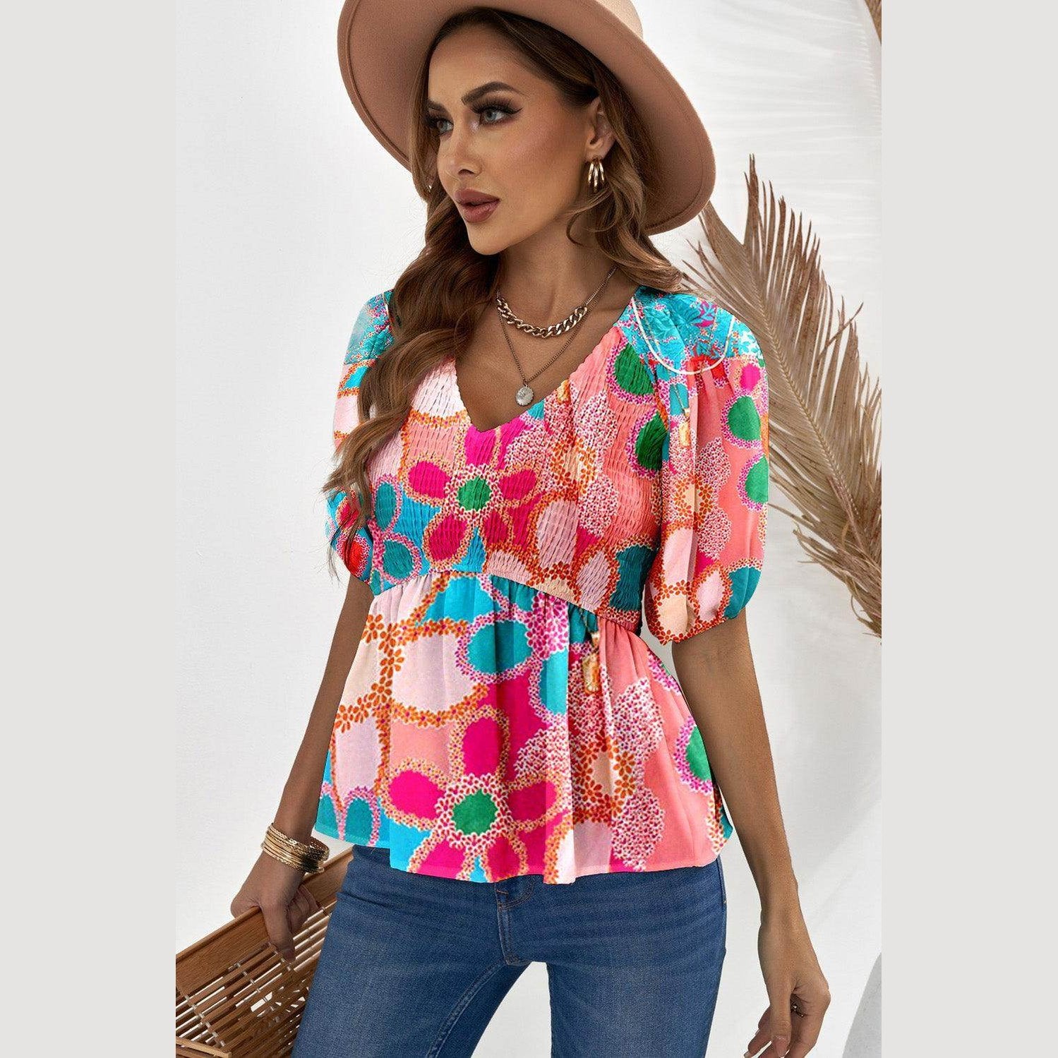 Elevate your vacation wardrobe with the printed V-Neck Babydoll Blouse, a perfect piece from VacationGrabs. This casual beachwear blouse is designed for those who love a mix of comfort and style on their holidays.