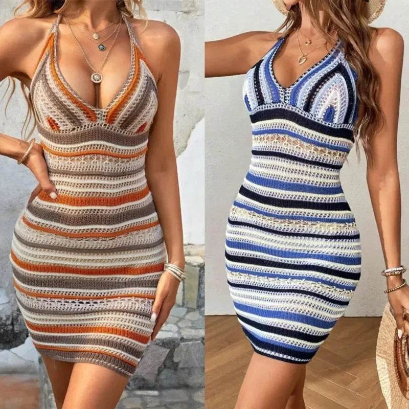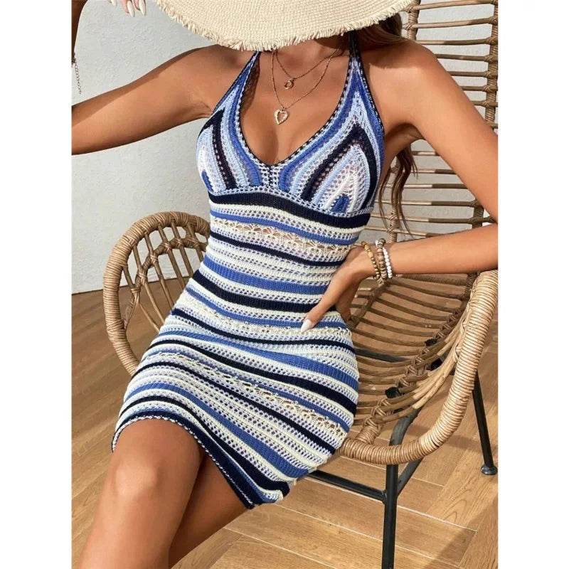 Summer Halter Backless Dress Crochet Knit Alluring Sheath