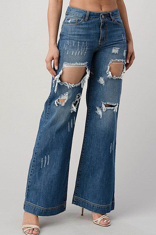 Made for the modern woman, the wide-leg cut provides freedom of movement. The fashion-forward distressing adds an edge to your outfit. Pair these jeans with a simple tee or a classy blouse, and you'll be turning heads no matter where you go.