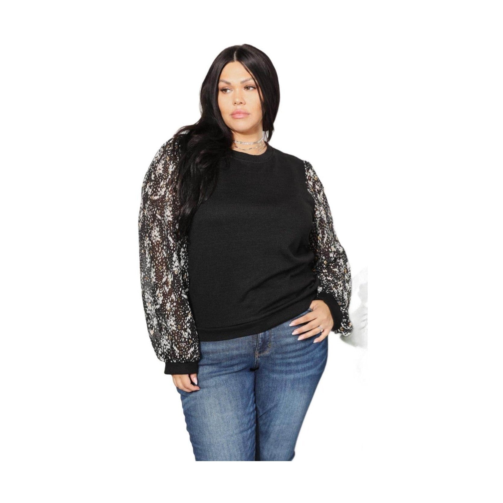 And The Why Full Size Foil Printed Sleeve Top