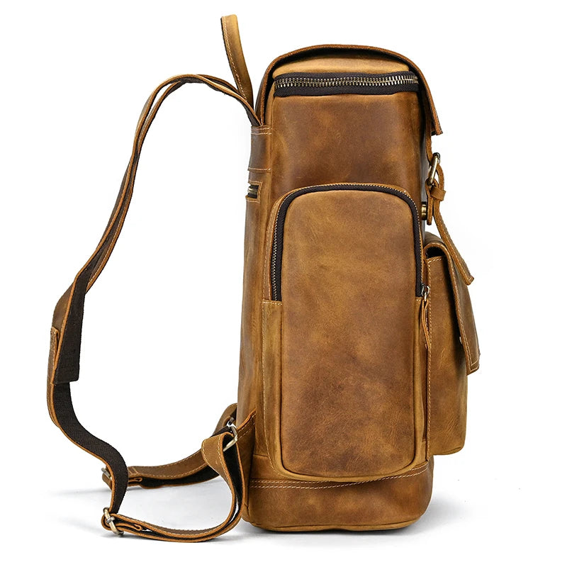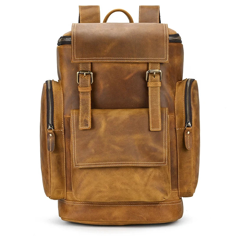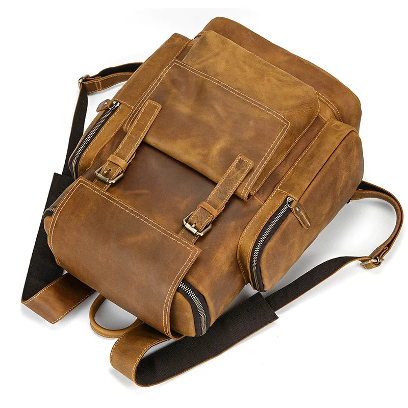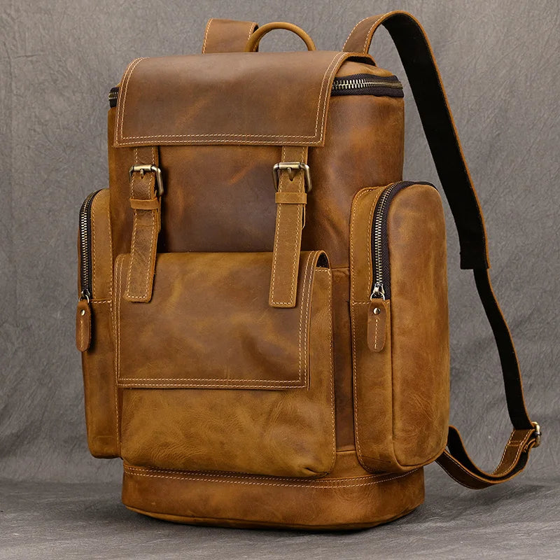 Retro Leather Backpack 15.6" Cowhide Laptop Daypack for Men