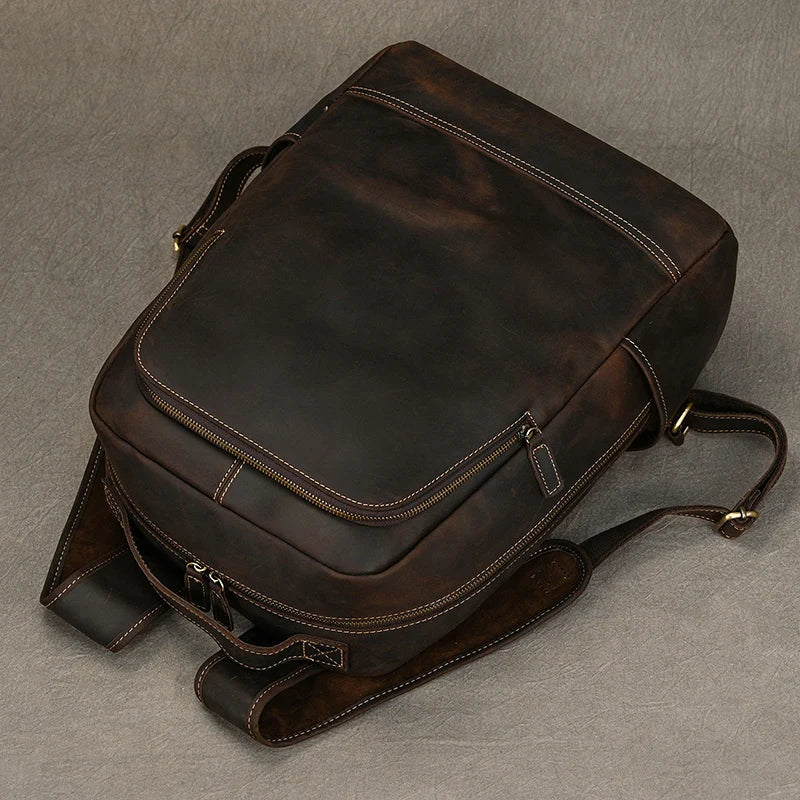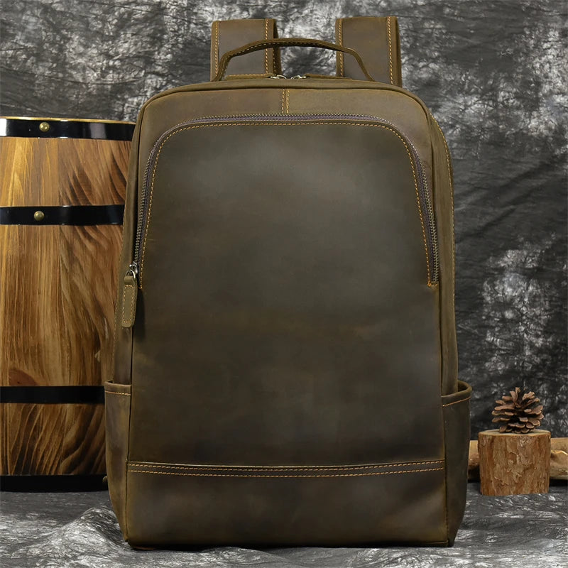 15.6" Laptop Leather Backpack for Men Vintage Business Daypack